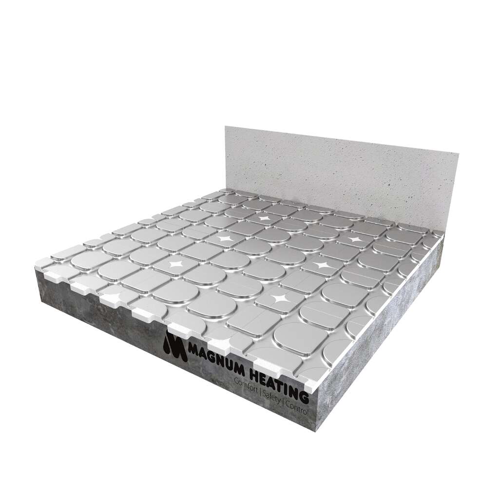 Het 18 mm dunne watergedragen vloerverwarmingssysteem MAGNUM HeatBoard W is direct toepasbaar onder zwevende hout-, parket- of laminaatvloeren. Uitsluitend geschikt voor droge ruimtes en ideaal voor renovaties.