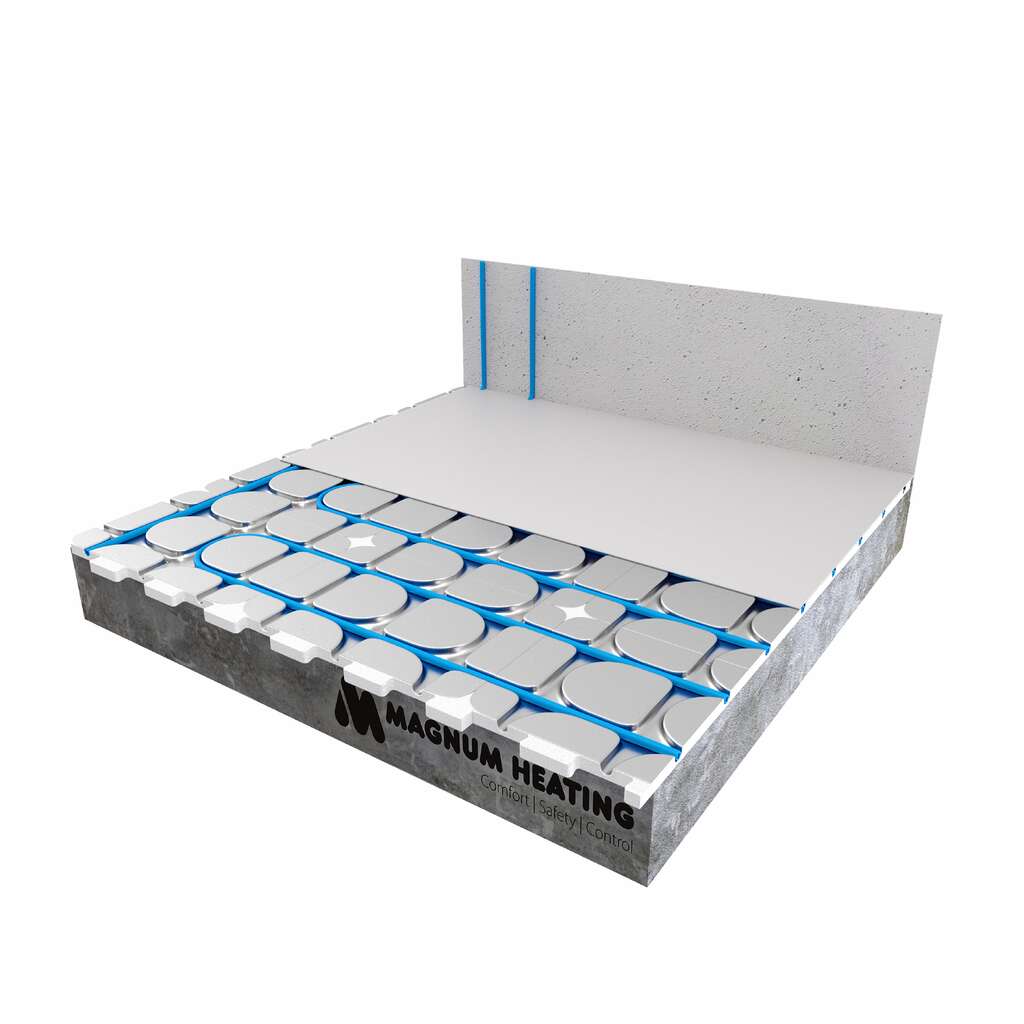 Installatiegemak De systeemplaten kunnen als puzzelstukken aan elkaar worden gelegd. Ze zijn tevens eenvoudig op maat te snijden met een hobbymes. Hierna kan de 12 mm MAGNUM Tube vloerverwarmingsbuis er eenvoudig worden ingeklemd. De vaste buisafstand hierbij is 12,5 cm. Per 1m² is ongeveer 8m¹ (strekkende meter) MAGNUM Tube nodig. De vloer kan daarna worden afgedekt met de meegeleverde viltlaag waarop de topvloer kan worden aangebracht.