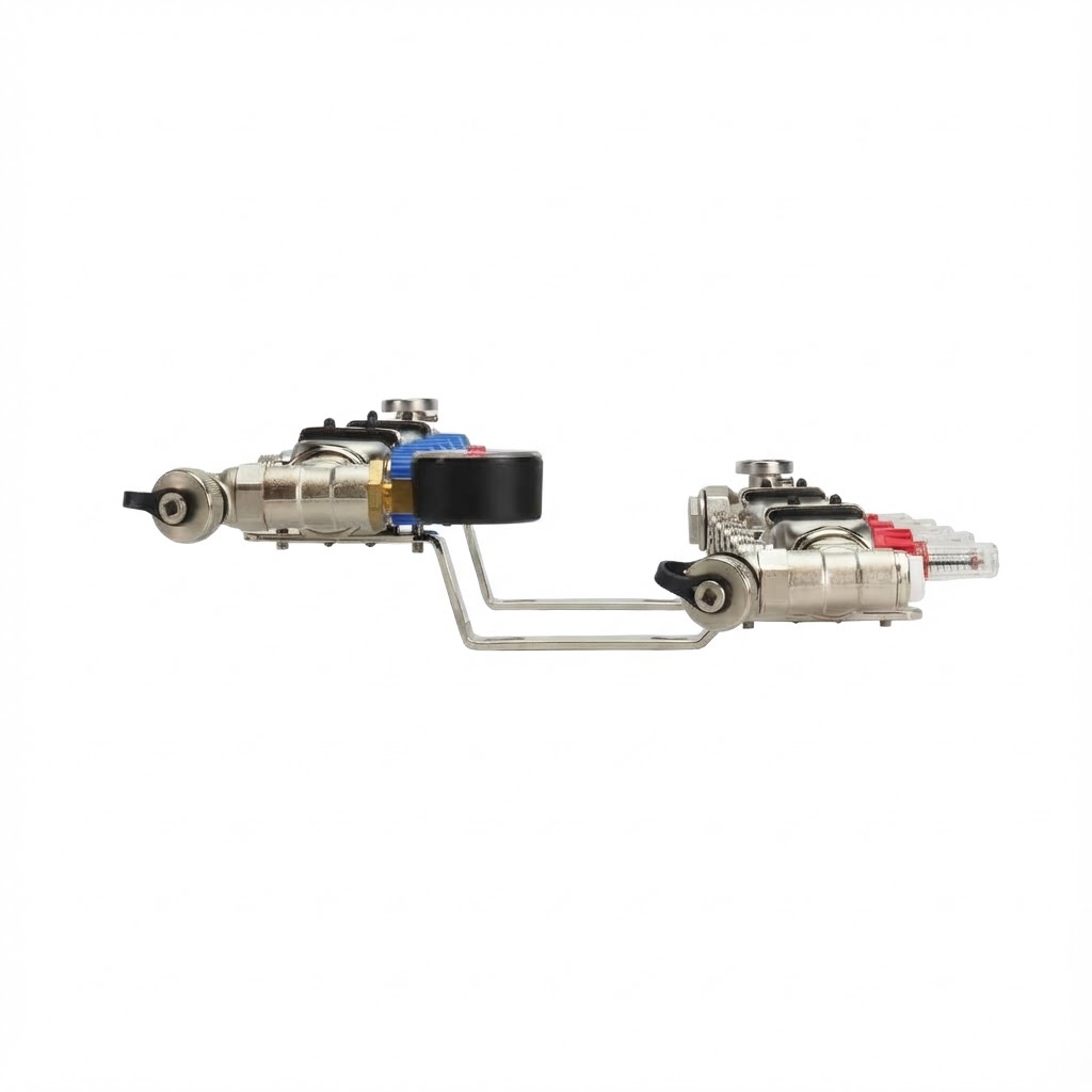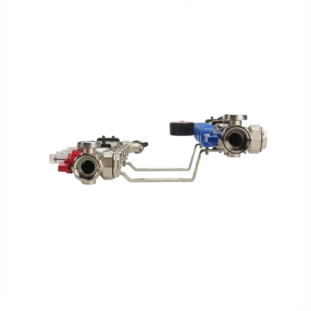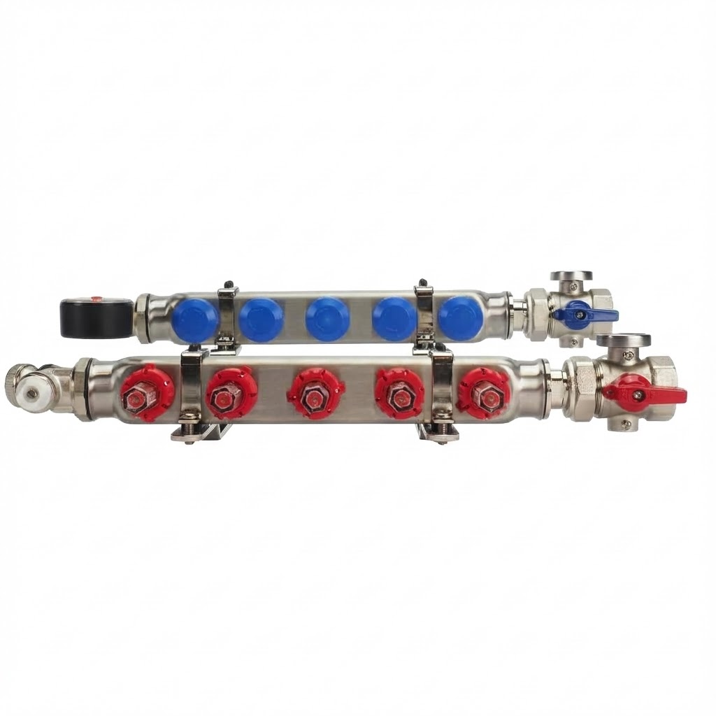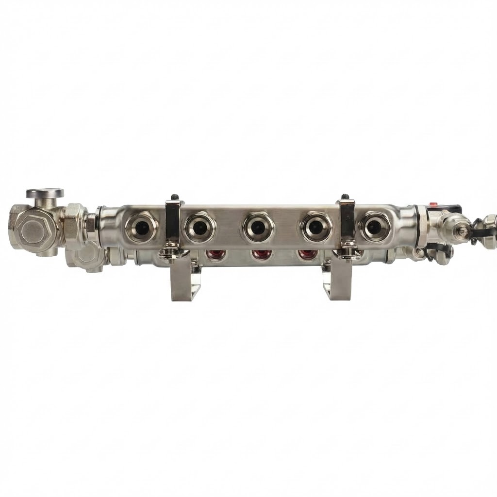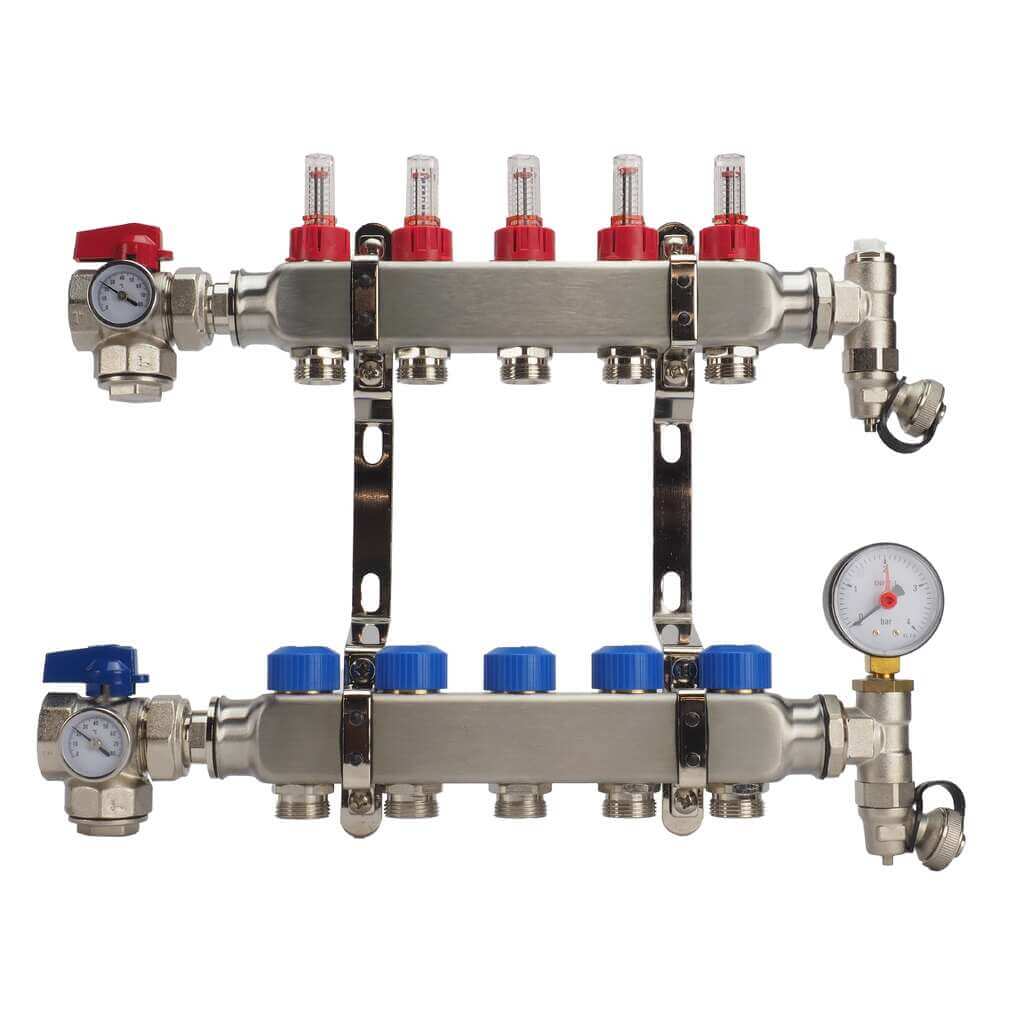 Primair is deze verdeler primair voorzien van 1” kogelkranen en 2 handmatige ontluchters.
